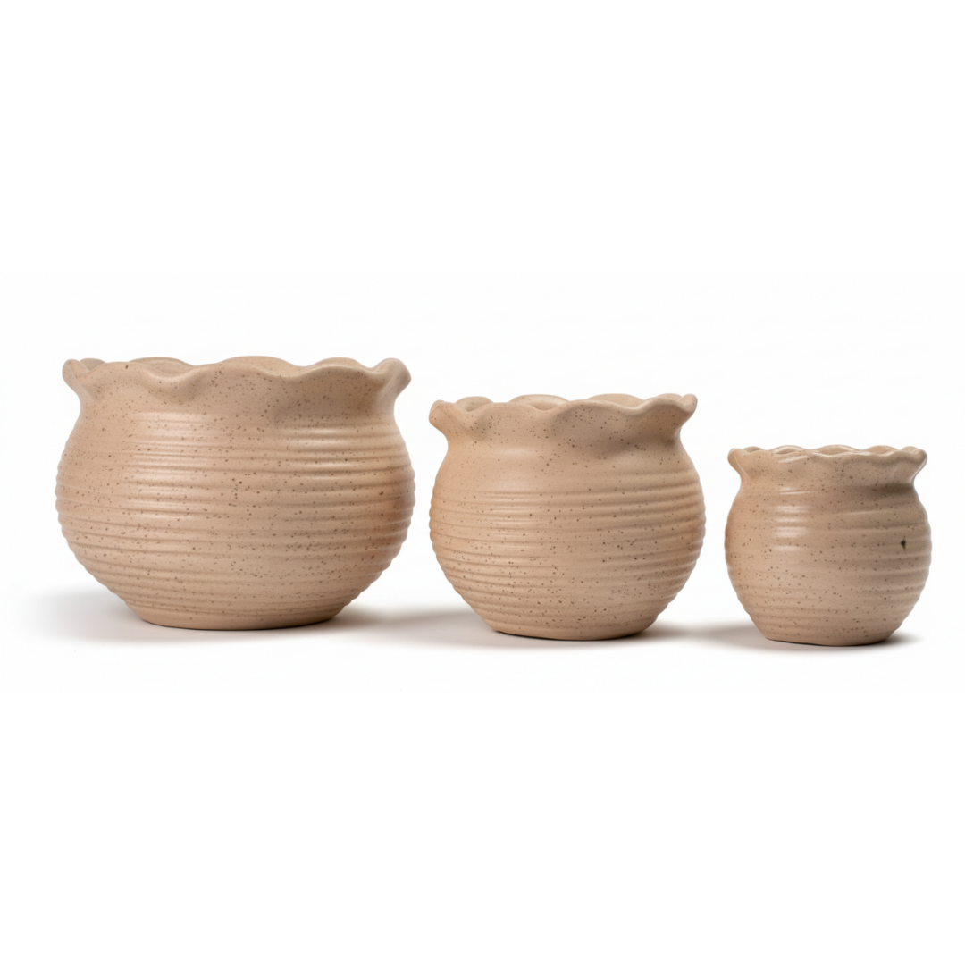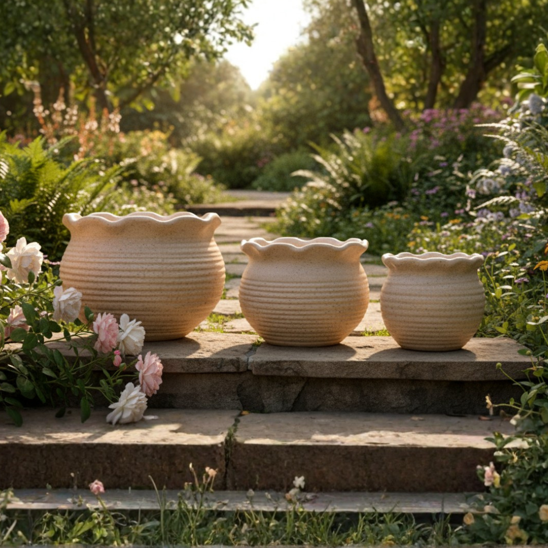 A stylish ceramic pot set designed for garden décor and indoor spaces.