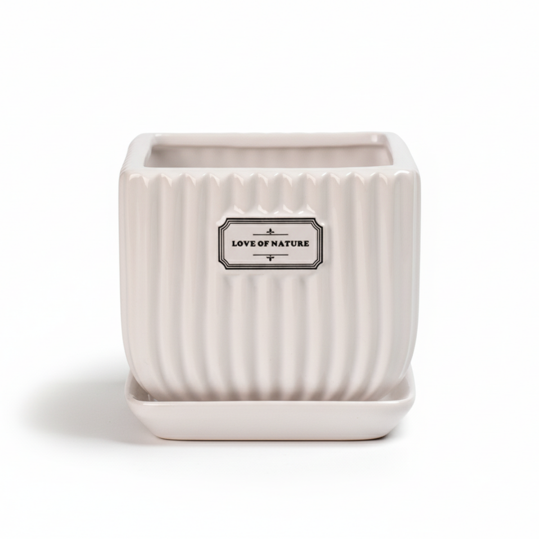 A clean square ceramic pot perfect for modern indoor spaces and plants.