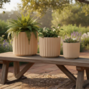 A natural texture ceramic pot set designed for indoor and balcony plant décor.