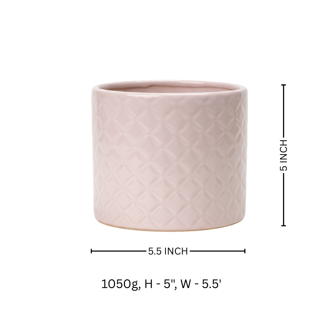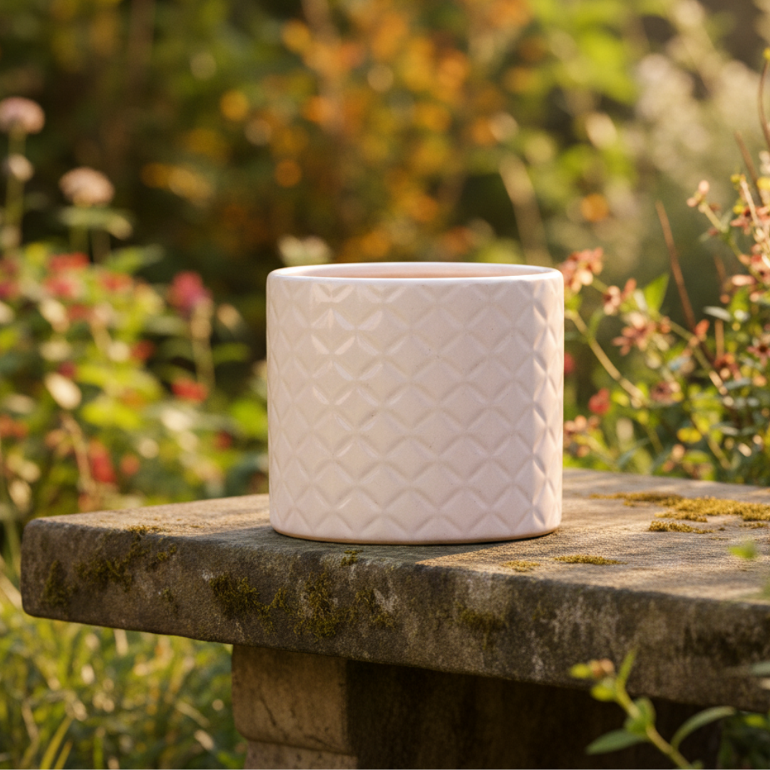 A textured ceramic pot perfect for outdoor and indoor gardening. Adds a natural touch to plant décor.