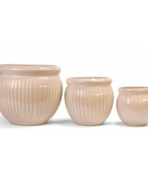 Rounded Beige Indoor Ceramic Pot Set